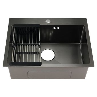 Мойка 60х50 см графит толщина 3,0 х 1/200 мм сифон с переливом + корзина