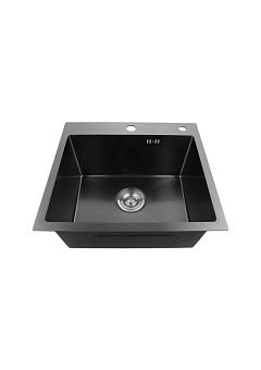 Мойка 50х50 см графит толщина 3,0 х 1/200 мм сифон с переливом + корзина