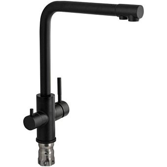 Смеситель д/кухни Г-обр. гусак МАГНУС с краном питьевой воды. из нерж. стали марки 304, черный 91120