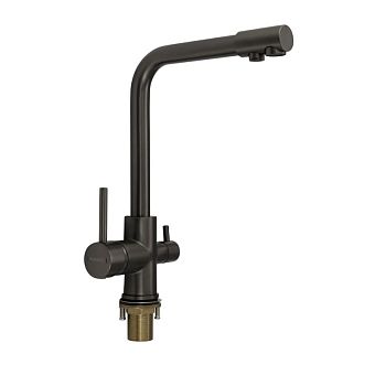 Смеситель д/кухни Г-обр. гусак МАГНУС с краном питьевой воды. из латуни, цвет - ГРАФИТ, арт.8247