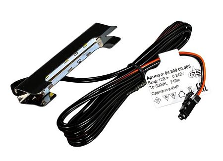 Светильник-клипса на ст. полку (толщина 6-8мм) (LED) 0,24Вт, DC12В, 6000К, коннектор, нерж. сталь