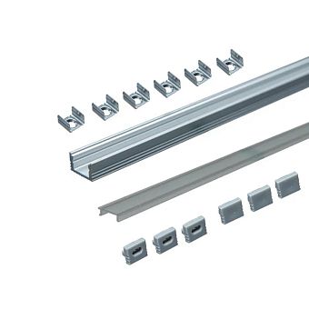 Комплект алюм. профиль ВСТР. SOLO 0609Т СЕРЕБР., 3м, 6х9мм, молочн. диффузор, 3+3 заглушки