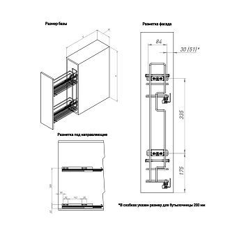 Бутылочница М200 прав. 150х450х530 графит, скрыт. монт.Blum