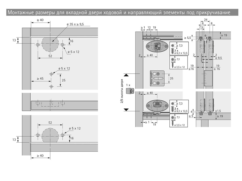 Направляющий элемент под прикручивание (нижний), для шкафов с 2 вкладными дверями Slide Line 55 Plus от бренда Hettich.