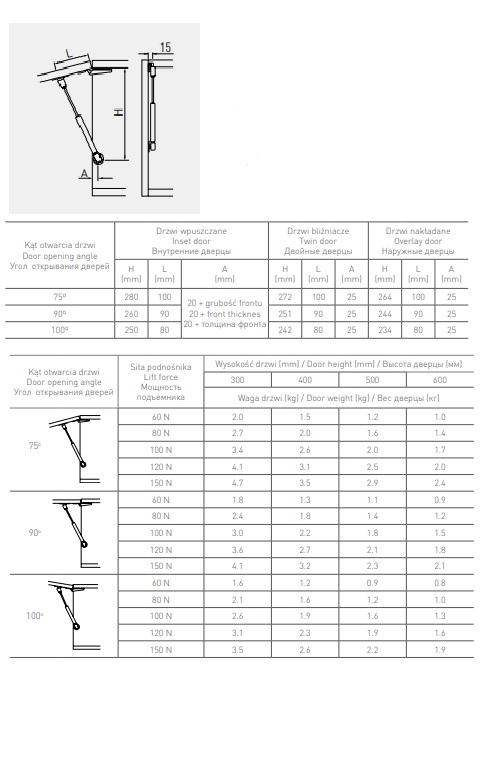 Модель оснащена механизмом подъемника, который способен поддерживать вес до 15 кг, что делает его идеальным для использования с различными типами шкафов и ящиков. Для смягчения удара и повышения комфортности эксплуатации рекомендуется устанавливать два газовых подъемника на один фасад, что поможет обеспечить оптимальное распределение нагрузки.