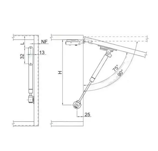 Подъемник gtv рассчитан на нагрузку в 60 Н, что соответствует примерно 6 кг. Данная модель не поддерживает регулировку угла открывания, что делает её простым и надежным выбором для использования в кухонных шкафах, тумбах и других мебельных конструкциях.