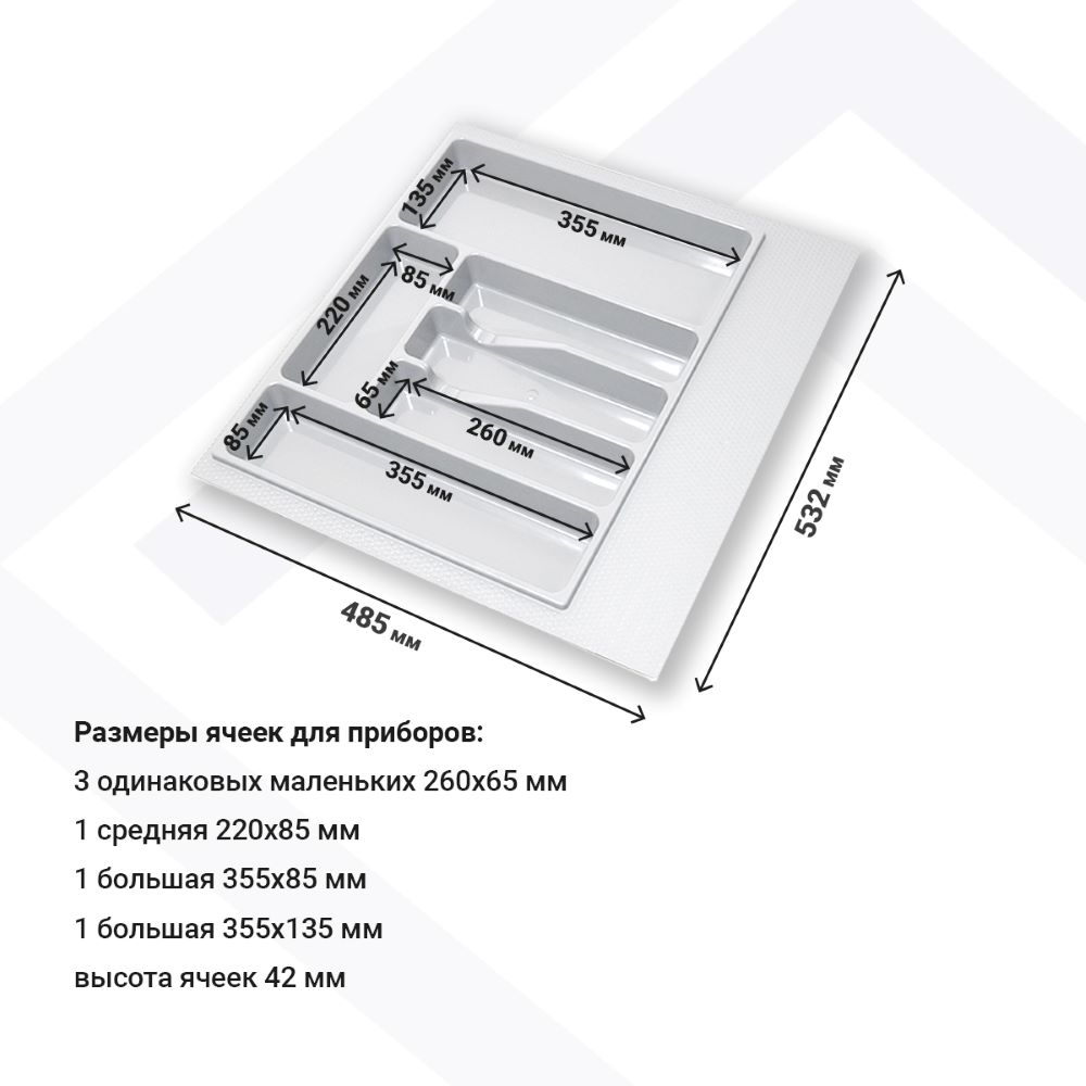 Лоток для столовых приборов М600мм, 532х485мм, белый