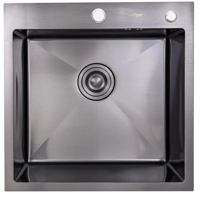 Многофункциональная кухонная мойка Hoffger HFG-5050B Black чёрный графит, с двумя отверстиями под смеситель и дозатор.