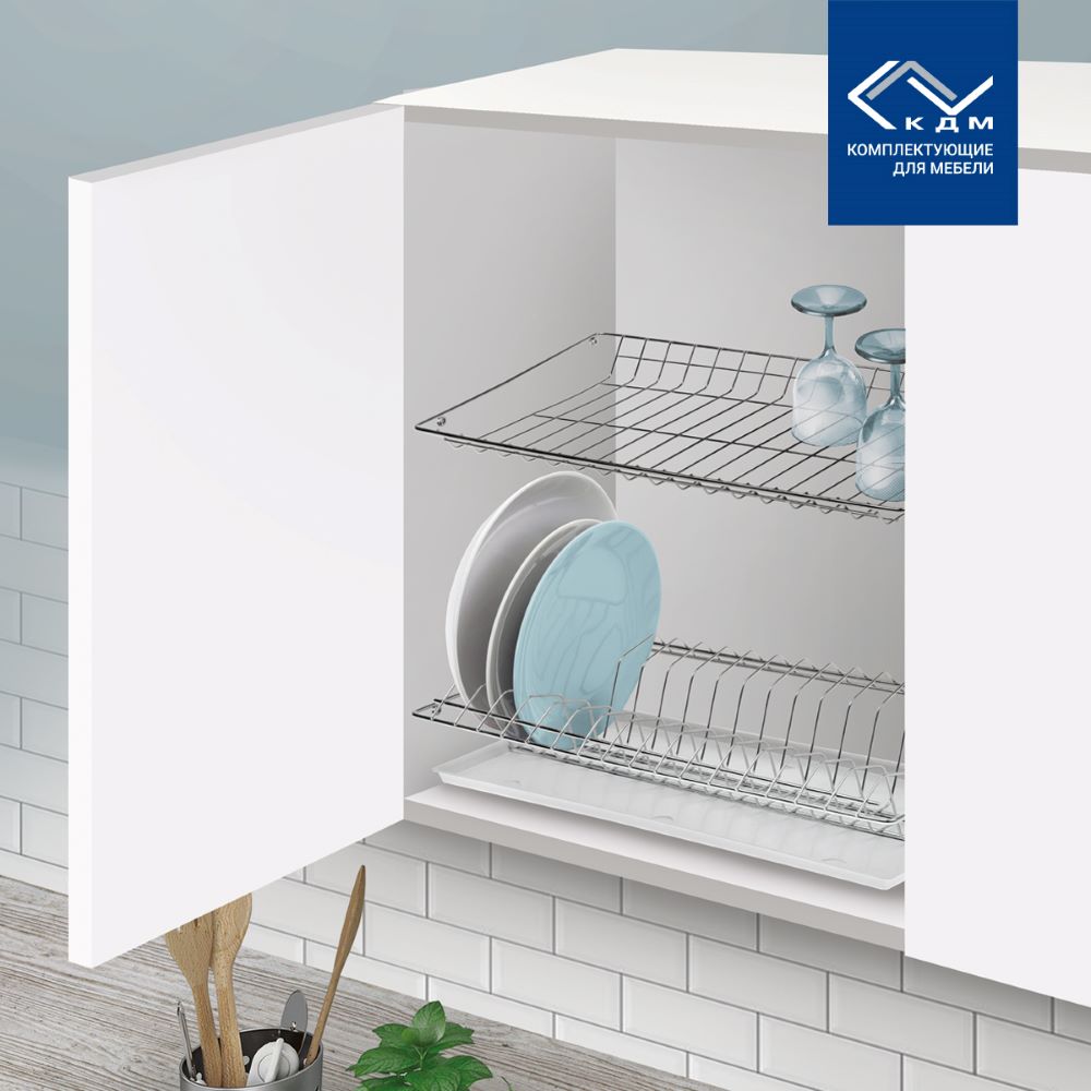 Надежные и удобные полки сушки встраиваются в кухонный шкаф. В комплекте пластиковый поддон.