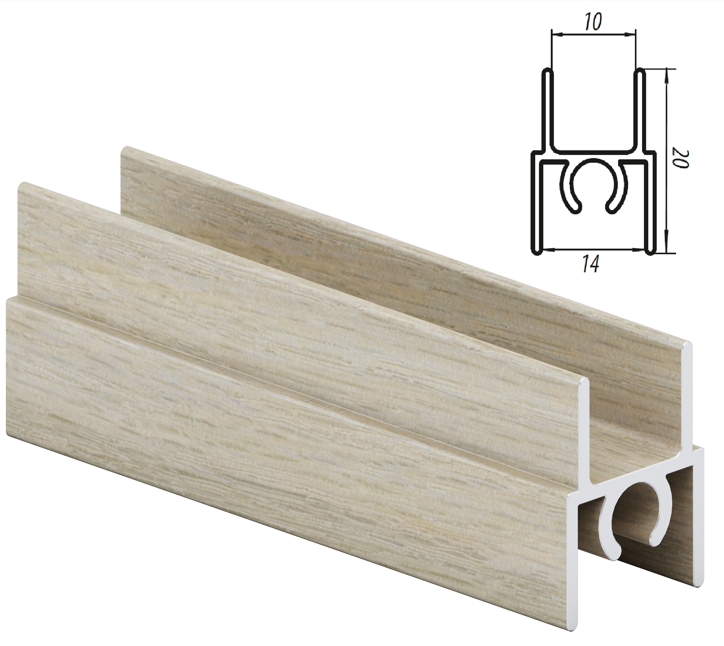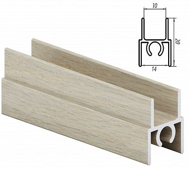 Горизонтальный верхний профиль монтируется на торец верхнего среза двери раздвижной системы дверей для шкафа-купе. Эта деталь также придает дверному полотну эстетичный вид и служит в качестве декоративной планки.