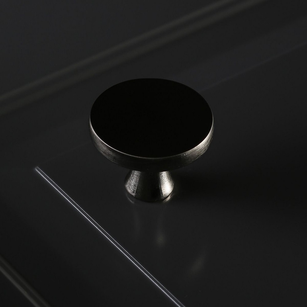 Ручка-кнопка GTV DUNE, выполненная в цвете шлифованной стали, является изысканным элементом мебели. Ее уникальная форма кнопки с плоской шляпкой добавляет элегантности и стиля, делая её идеальным акцентом для шкафов, комодов и ящиков.