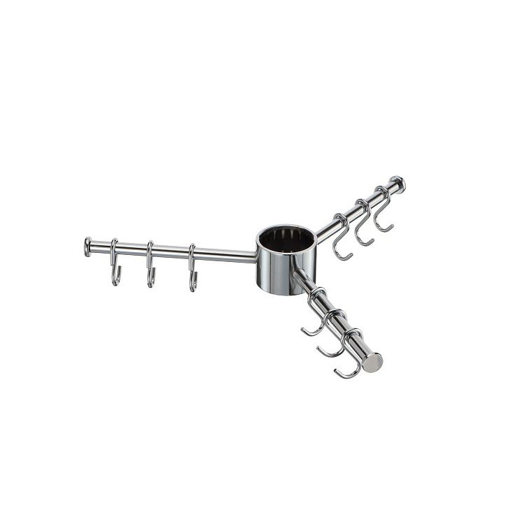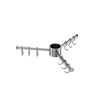 Вешалка на основе полой трубы диаметром 16мм c центральным сквозным держателем для установки на полую трубу диаметром 50мм в комплекте с крючками. Используется в качестве держателя для полотенец, прихваток, фартуков и других мелочей.